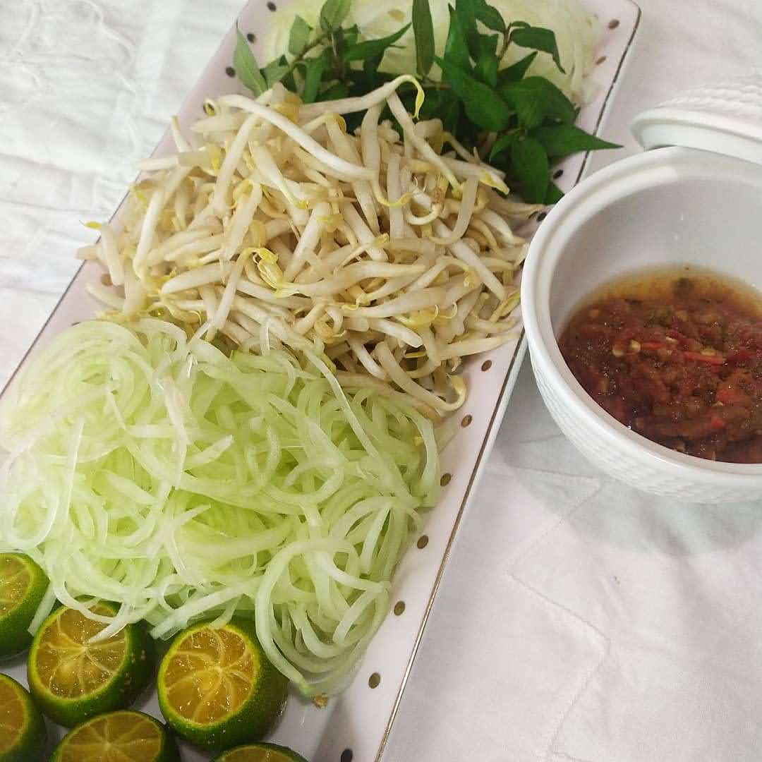 * Bhn ulam - timun (org Johor ada style potongnya), bwg, tauge, daun kesum, daun selasih.
